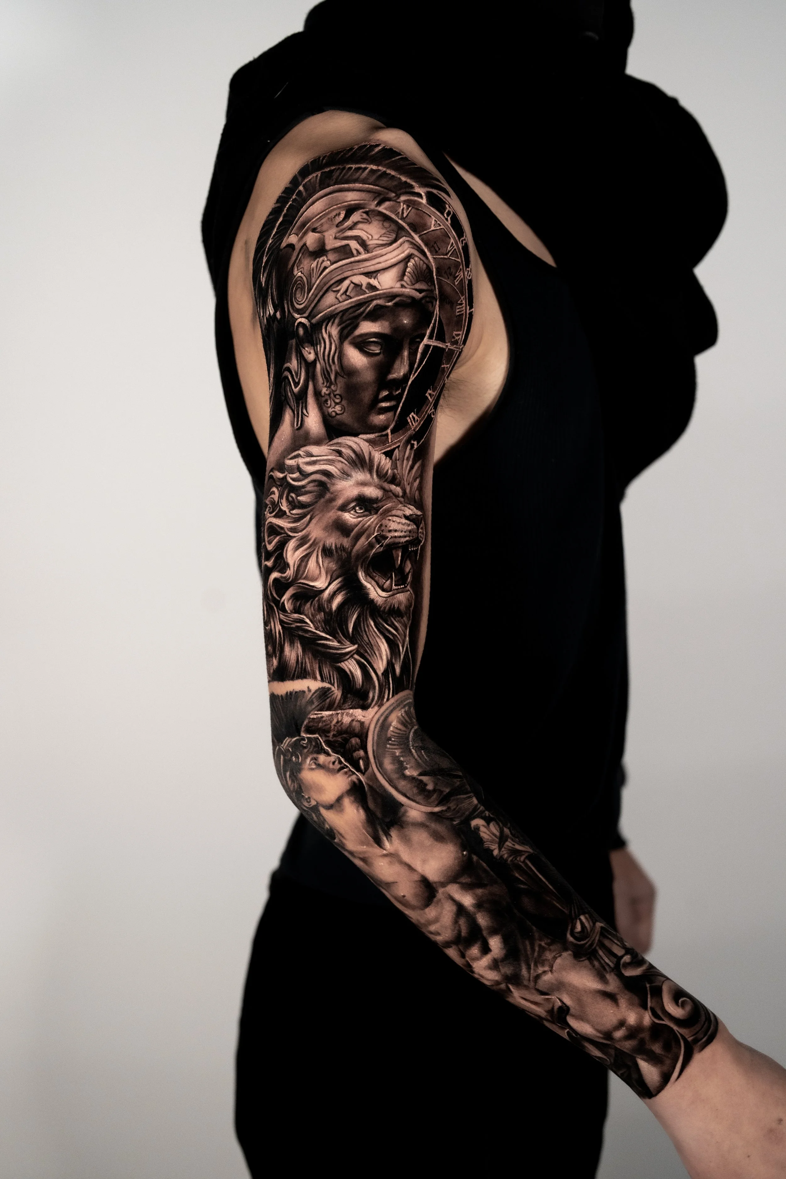 Black and grey realism tattoos continue to set the standard for timeless artistry. In 2025, we’re seeing collectors in Toronto, Oakville, and across the GTA push for larger projects that maximize detail and create full storytelling experiences on the skin. Unlike smaller tattoos that condense ideas into limited space, large-scale black and grey tattoos give both the artist and client the freedom to explore themes in depth. - Zen Tattoo Studio
