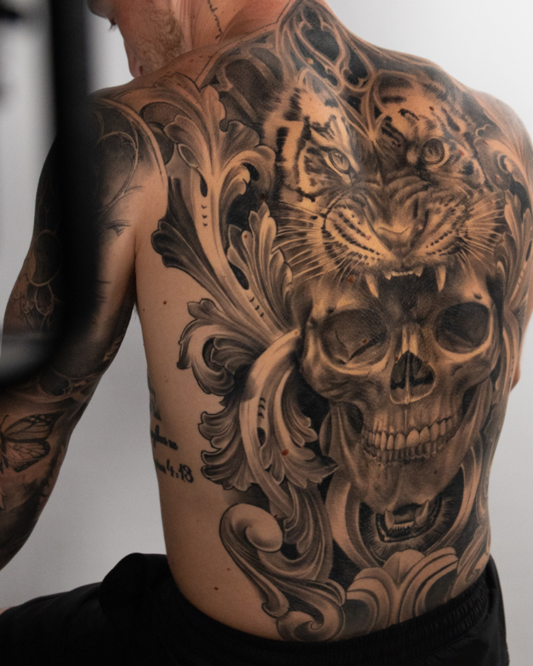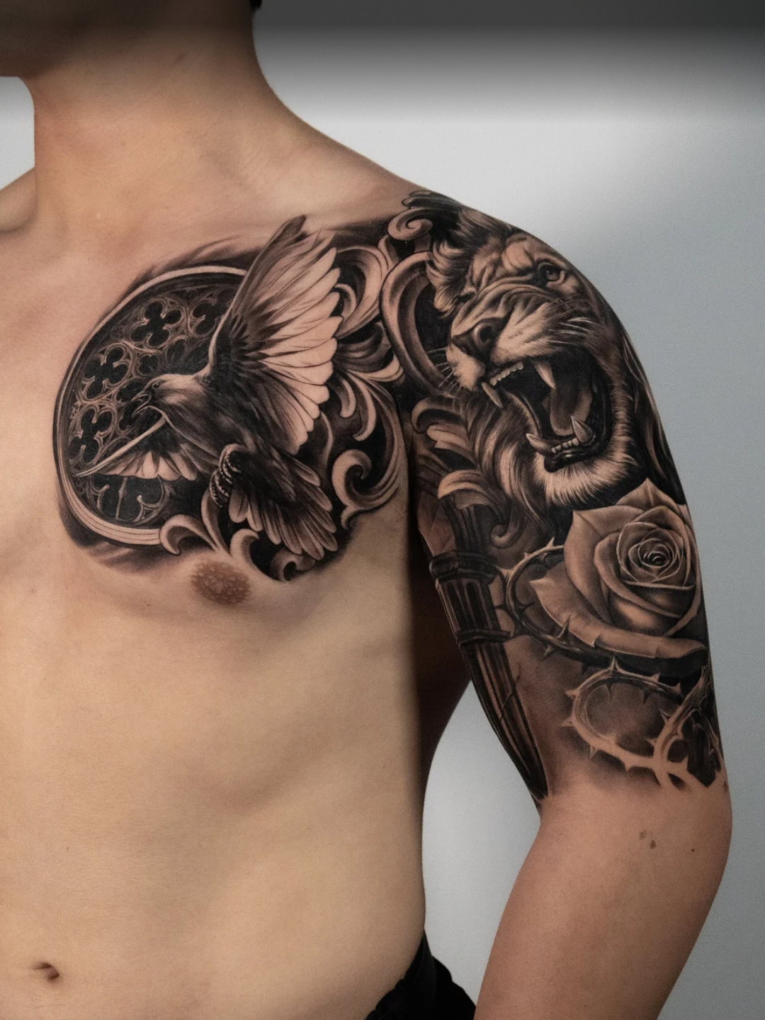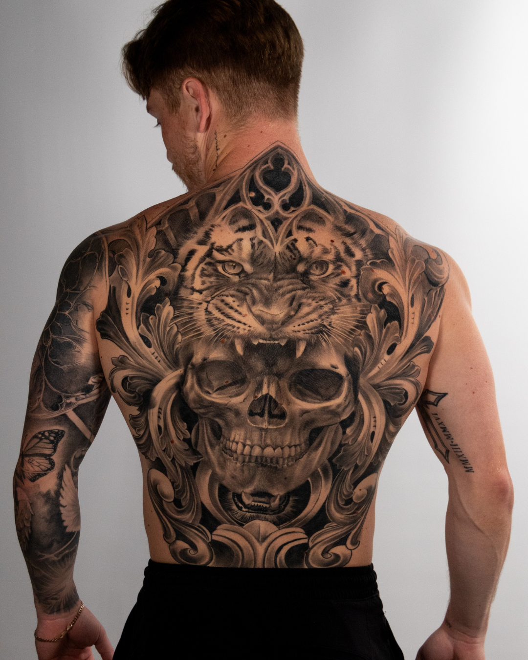 Discover Zack’s journey through a full back tattoo and chest tattoo in black and grey realism at Zen Tattoo Studio in Oakville, serving Toronto & the GTA. Pain, process, and symbolism revealed.